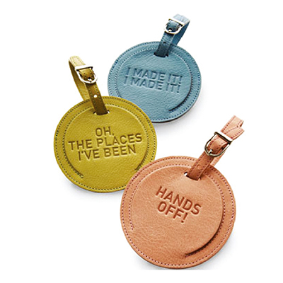 PU Leather,Made of quality durable leather to bend without breaking.Tag with replaceable information card,bright luggage tags help you find your own luggage at the first sight from similar luggage.Easy buckle up buckle for convenient closure, and connect your luggage and tags closely.The Name tags is perfect to attached your suitcase,handbags, cars,luggage,travel bags etc. Material: PU or Leather Dia:7.0cm